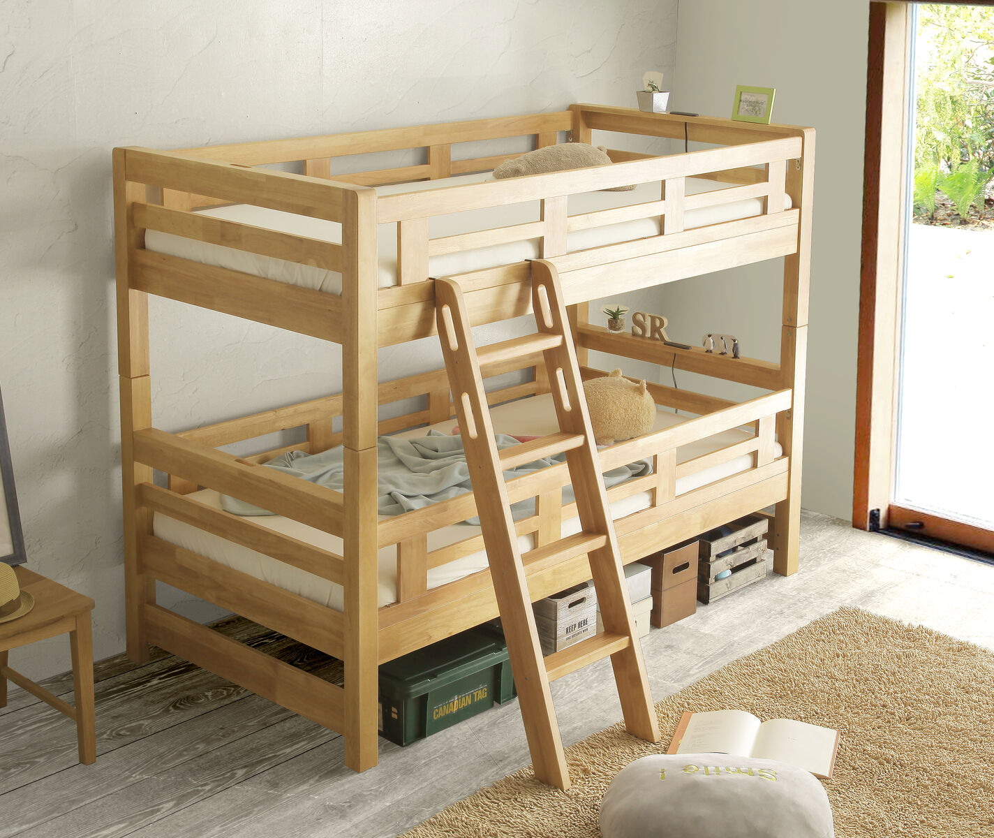 業務用にも使える頑丈さと大人も安心な下段空間高1mを確保した二段ベッド