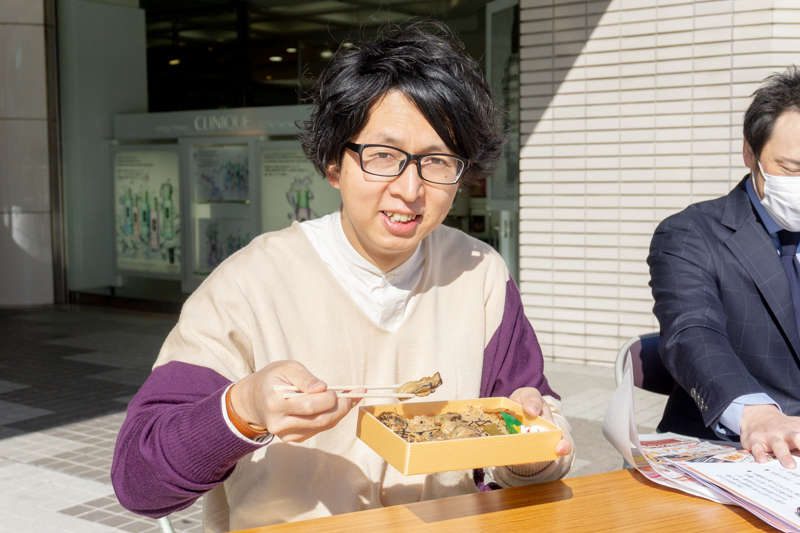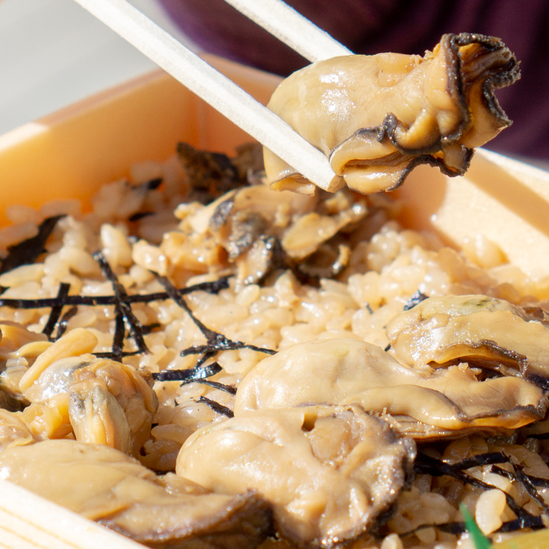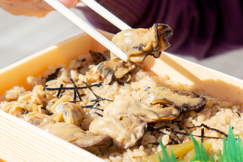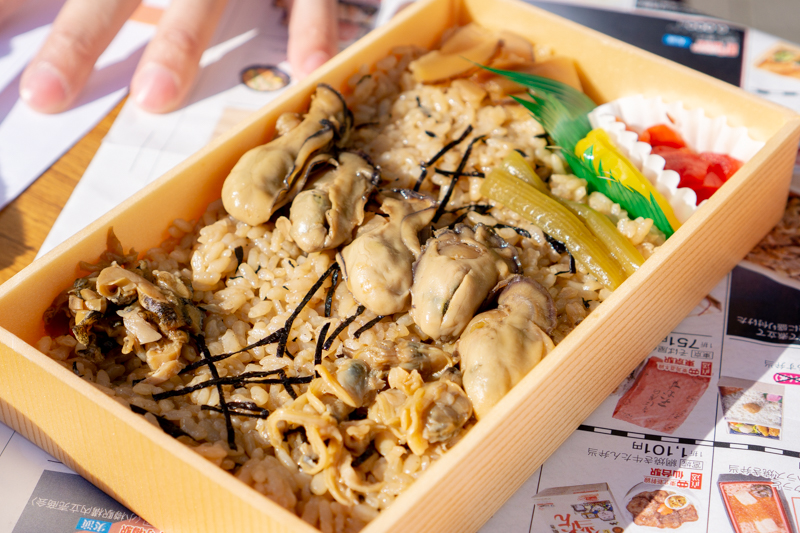 冬といえばやっぱり牡蠣なんで、牡蠣カテゴリーの駅弁として狙ってたんです。カキフライの弁当は結構見かけるんですけど、炊き込みはなかなかないんですよ」