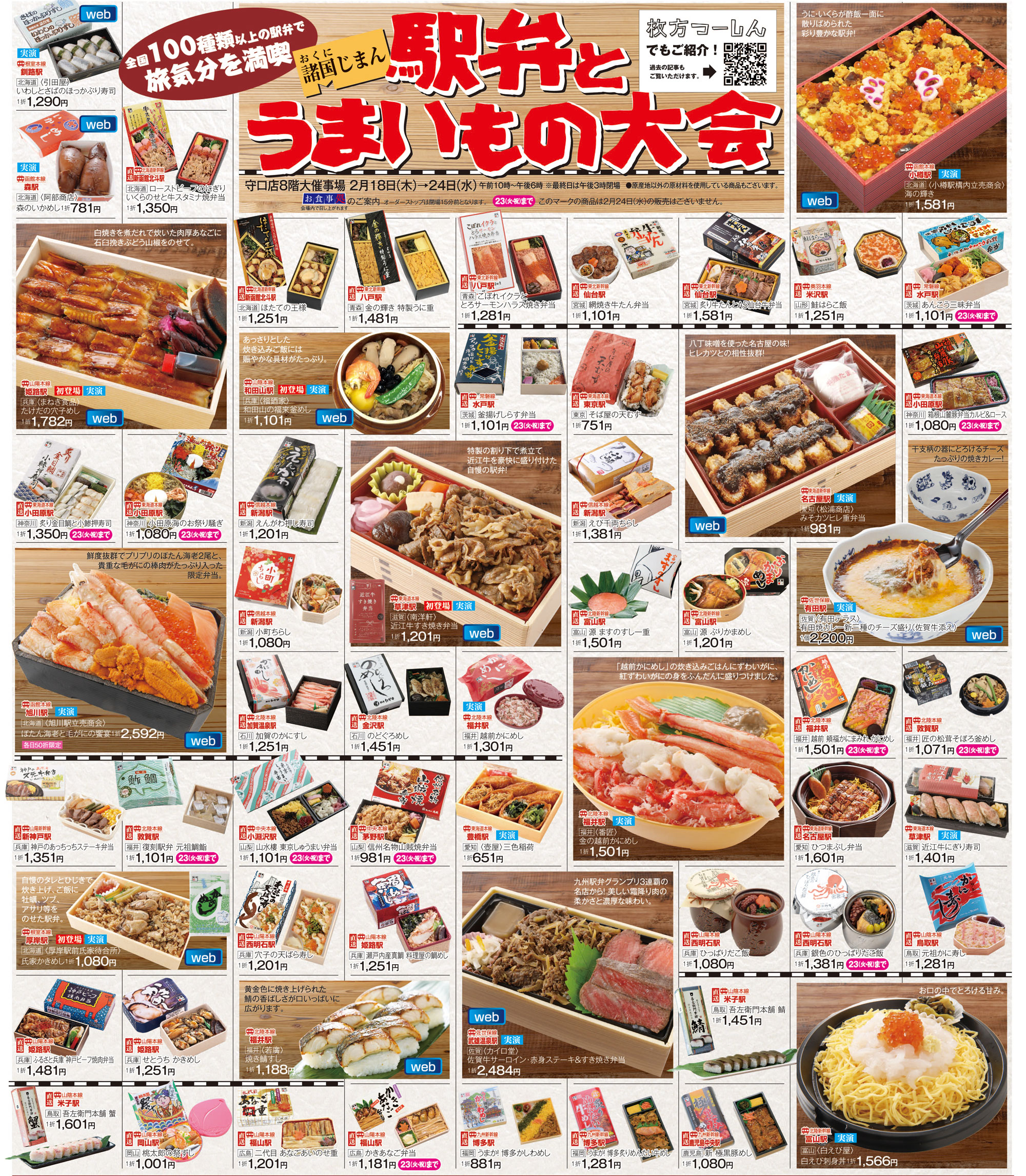 明日2/18から開催!「諸国自慢駅弁とうまいもん大会」の約200種の駅弁で全国旅気分【もりつー広告】