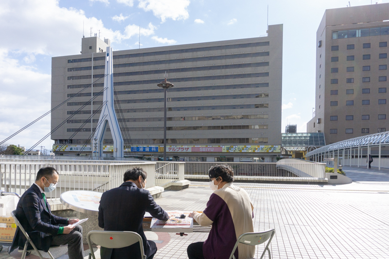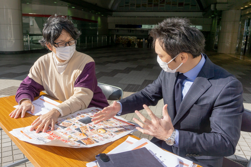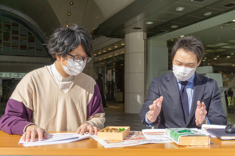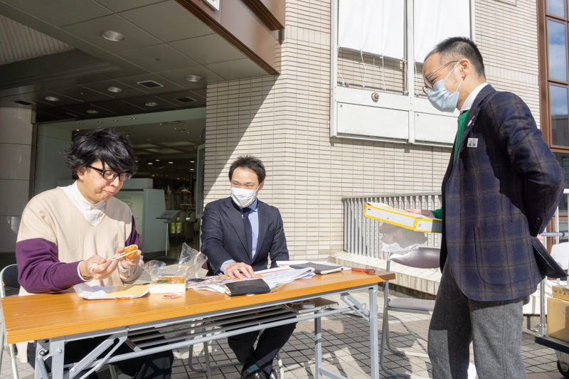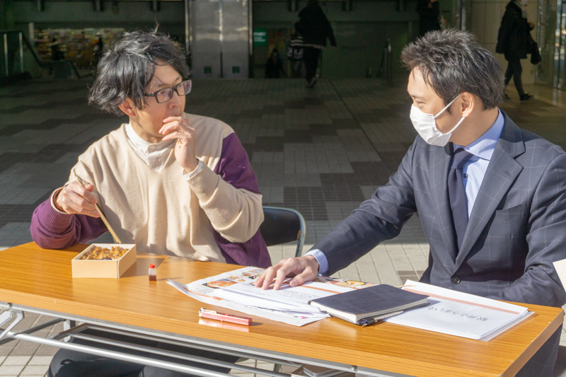 今回は三密を避けて、屋外でインタビュー&駅弁の試食をさせていただきました。