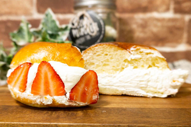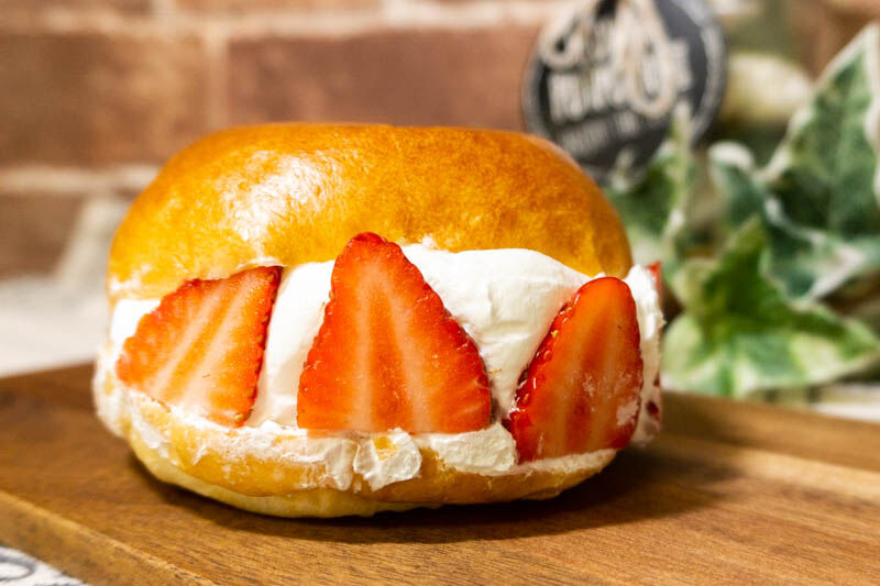 マリトッツォにはクリームがたっぷりイン!苺が華やか〜!!