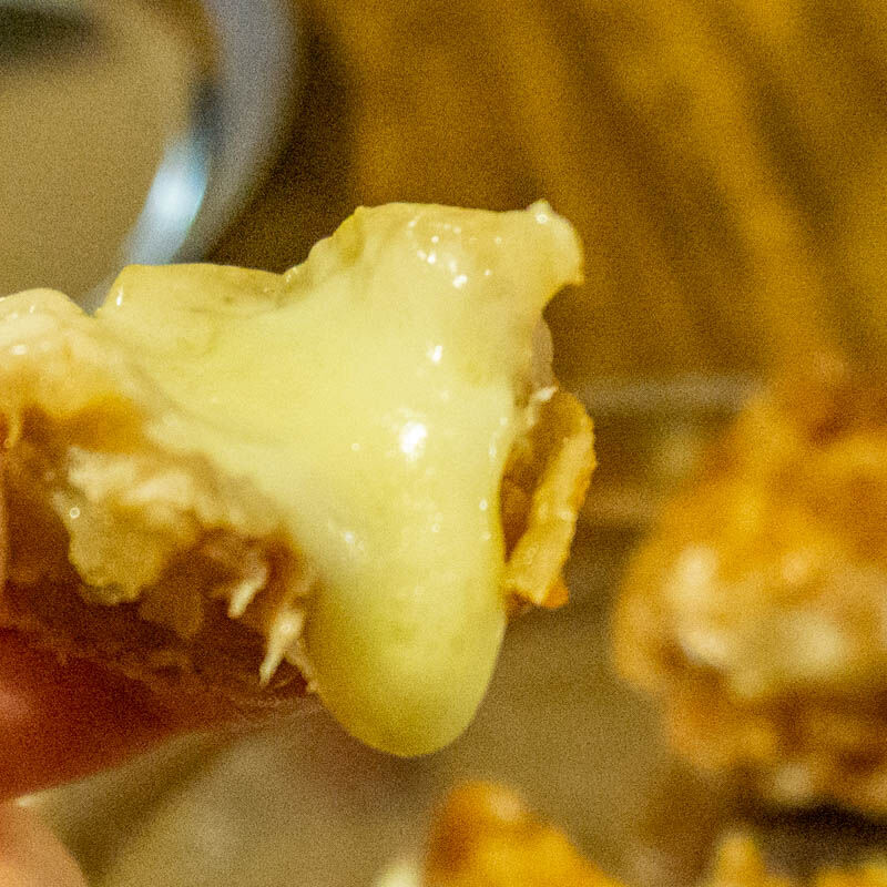お店の方によると、鶏肉の中に丸いチーズをいれて揚げているそうです。