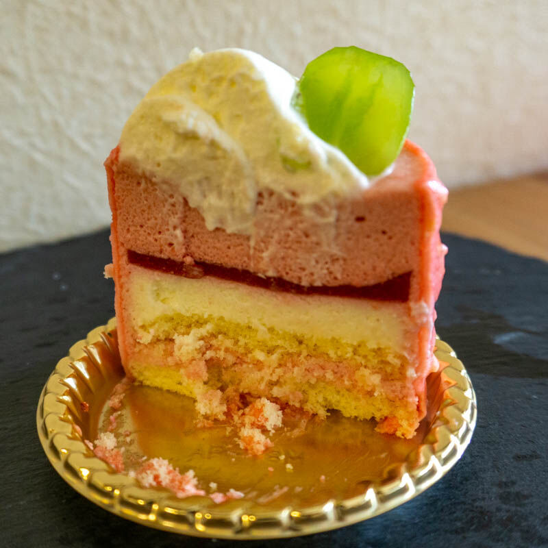 中は、ムースとスポンジとジュレが入っていて、またちがう食感がいろいろまざる感じでおもしろい。