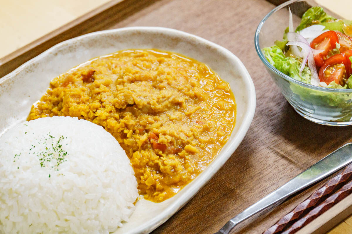 これは大豆のキーマカレー。大豆ってぜんぜんわかんないくらい肉感!スパイシーでごはんがすすむやつ。