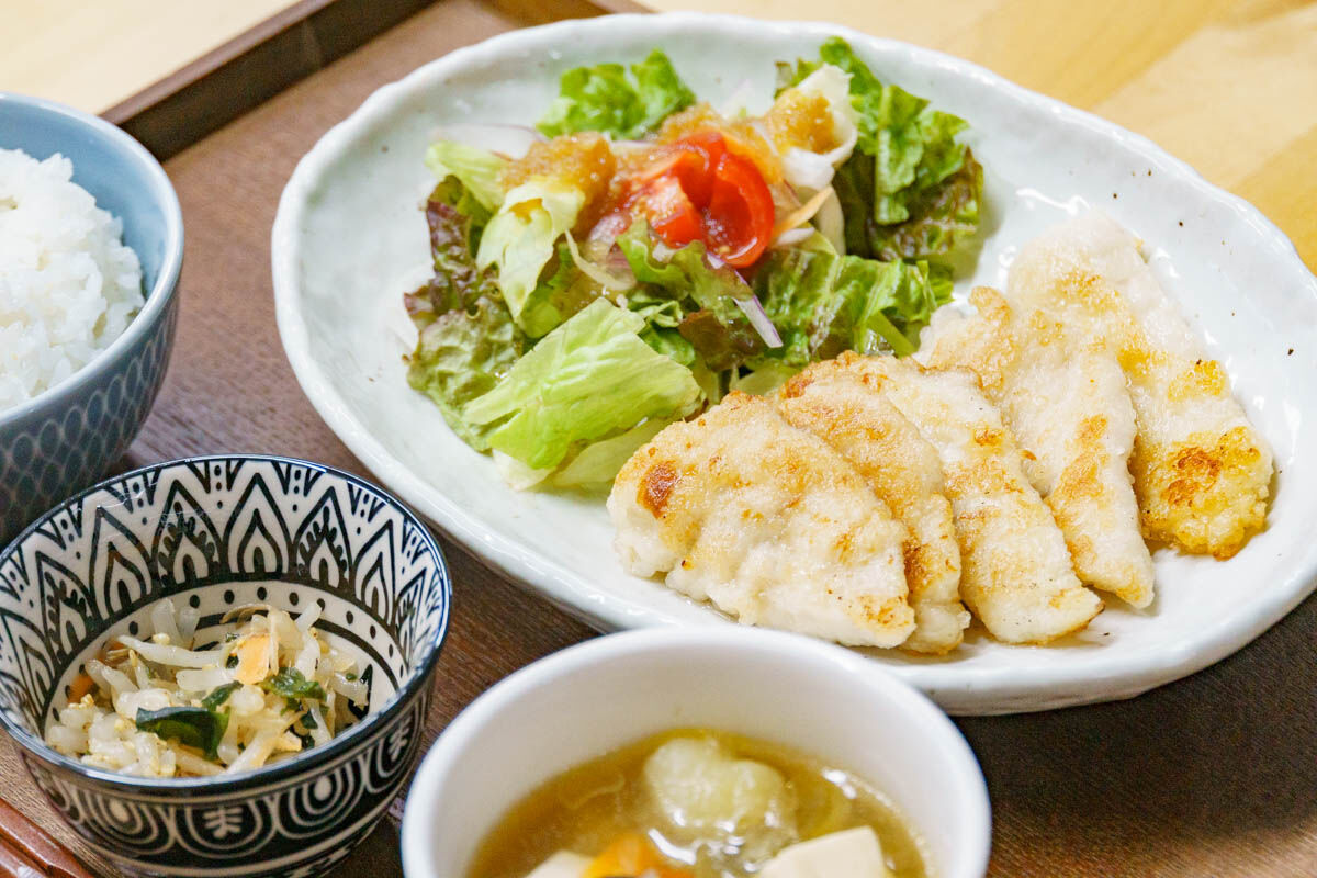 しおこうじを使った鶏肉、しっとりしていて、中までフワフワですごく柔らかい。小鉢や汁物も具沢山で、味付けも繊細。素材の味が体に染み渡るような優しさでした。