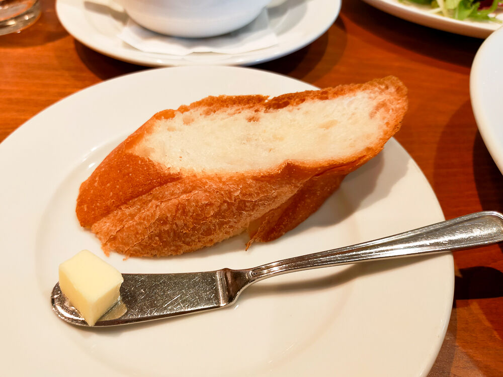 パンはバターを塗って食べるわけですが、外はパリパリッ、中は柔らかい食感で美味。