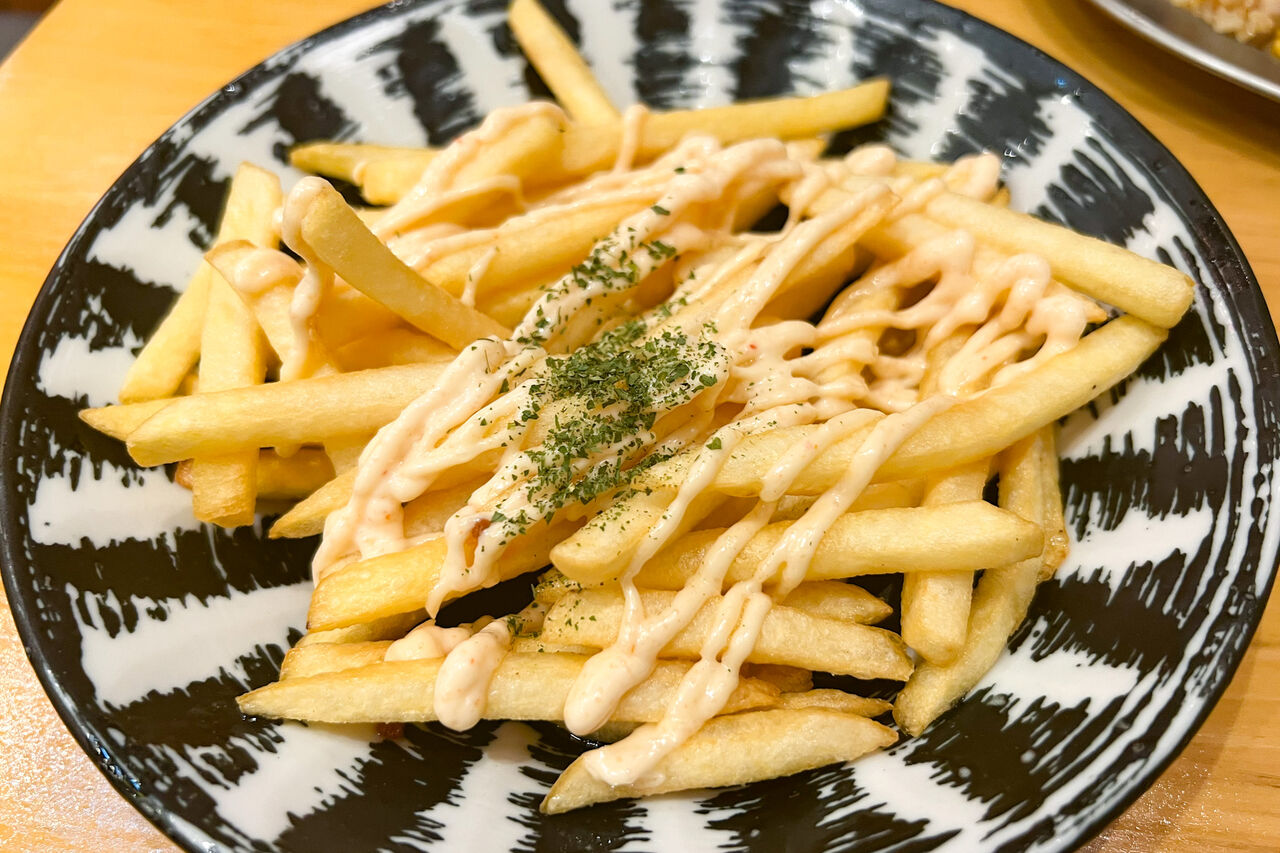 お酒の相棒といえば⋯のフライドポテト。今回は明太マヨポテト(362円)を注文しました。