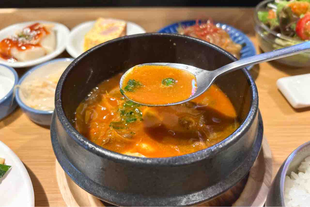 チゲは辛めなので白米と食べるとちょうどよくて美味しい!私は辛いほうが好きなのでほぼ白米無しで食べました。