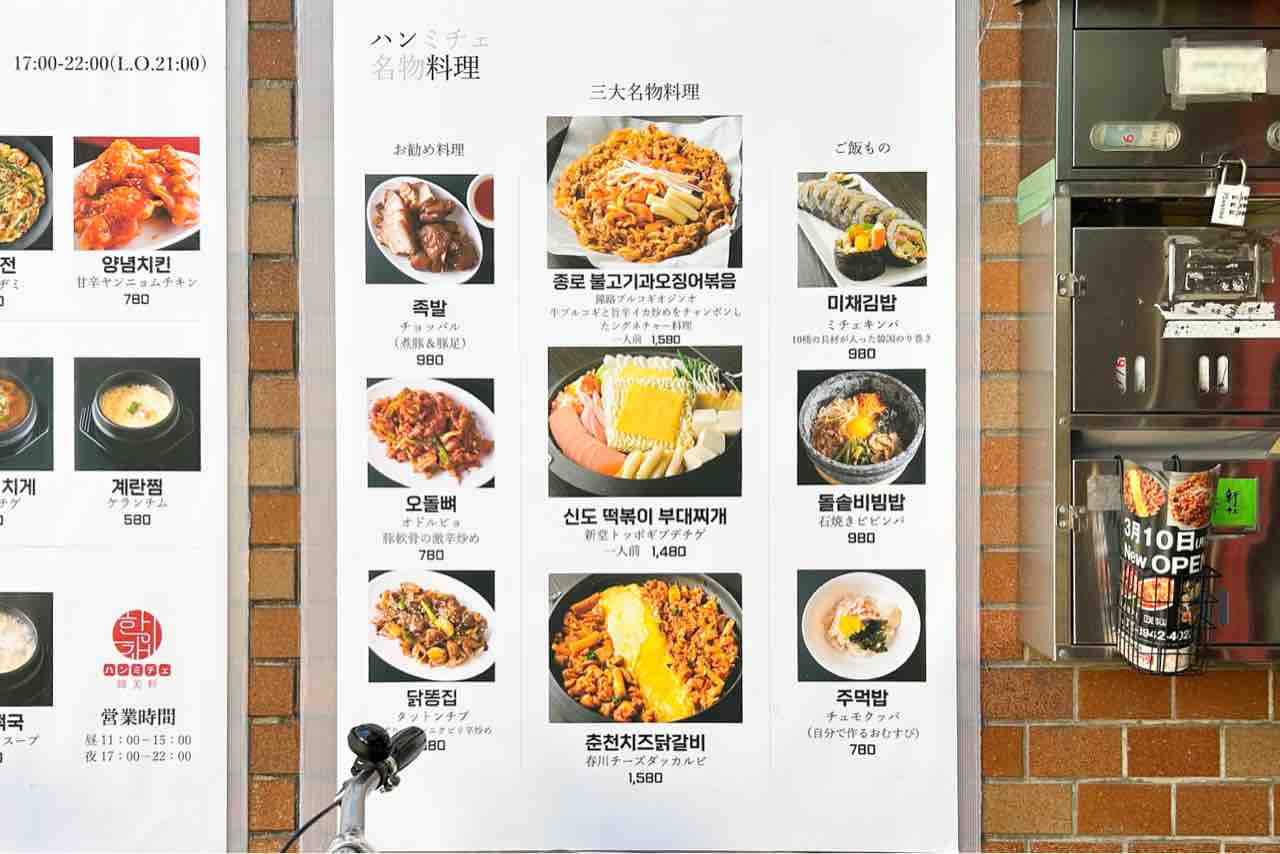 聞きなれない韓国語のメニューもあります。『オドルピョ豚軟骨の激辛炒め』が食べてみたい!