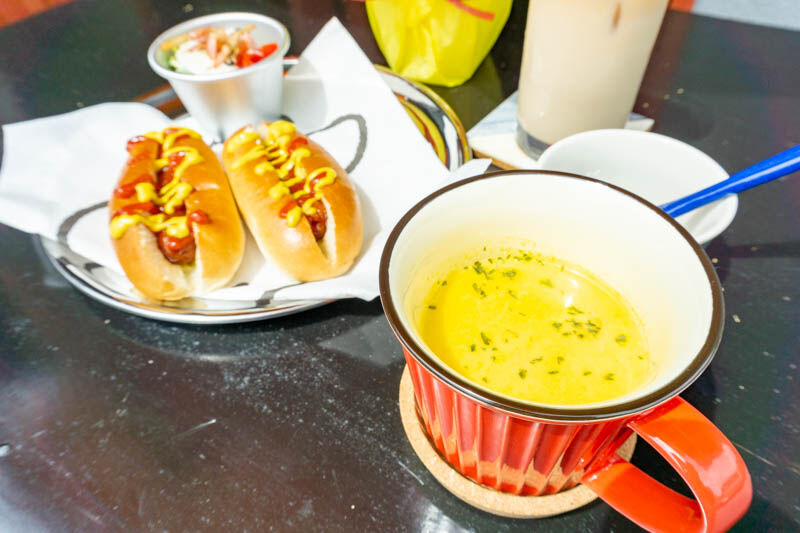 この日のスープは、豆乳カボチャスープでした。ほっこりしてホットドックと相性バッチリ!!