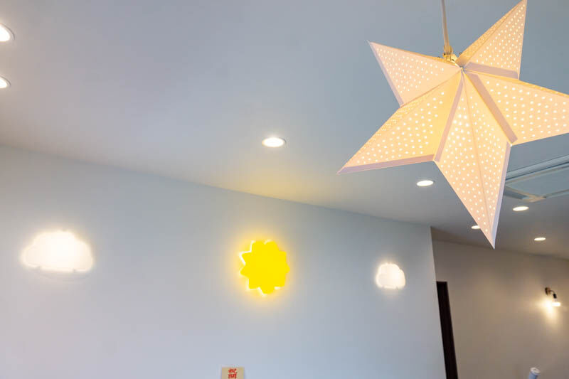 壁には店名の「ハレトクモリ」にちなんだ照明が。かわいい!