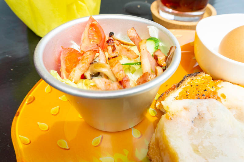 サラダにはカリカリベーコンときのこのソテーがのっているのもまたうれしい!