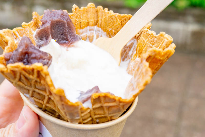 ワッフルコーンをちょっと割ってアイスをすくって食べたり、コーンのサクサクしたアクセントもいい感じに。