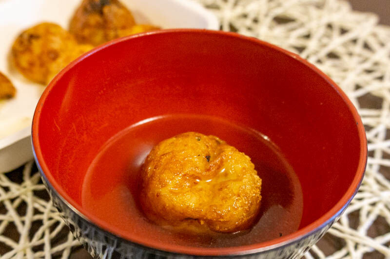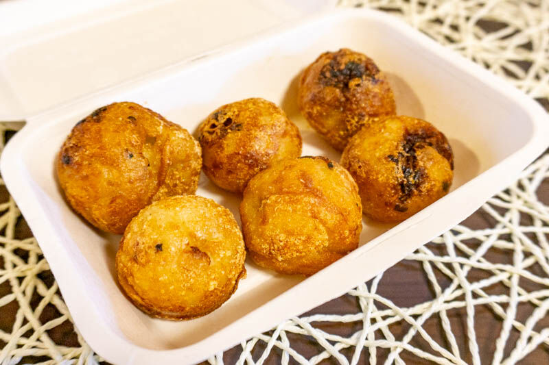 餃子をたこ焼きの生地でふっくら包んだメニューとのことで、食べてみると新食感にビックリしました。