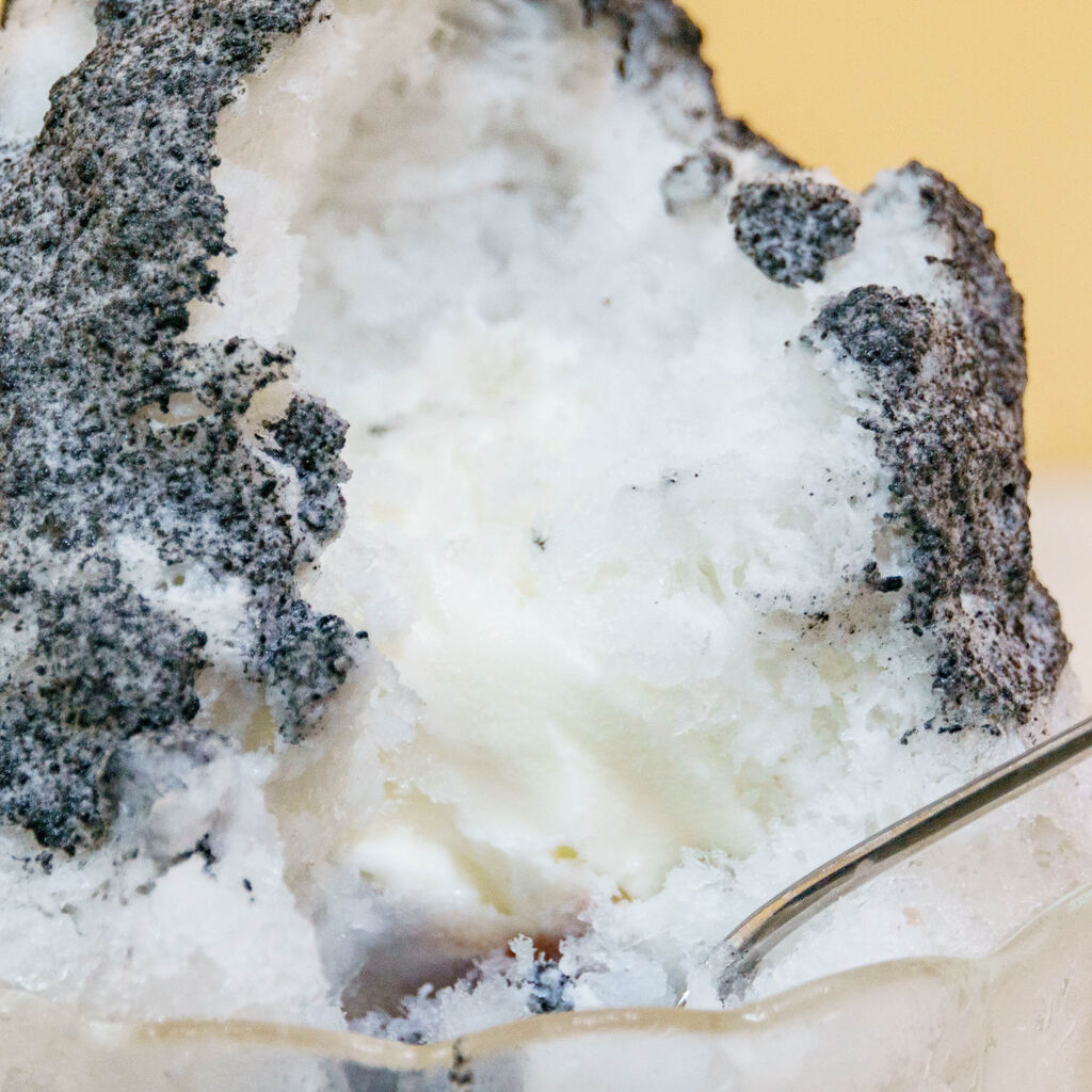 「角屋」のかき氷『黒ごま金時ソフト』(大阪市旭区森小路)【もりつーグルメ】