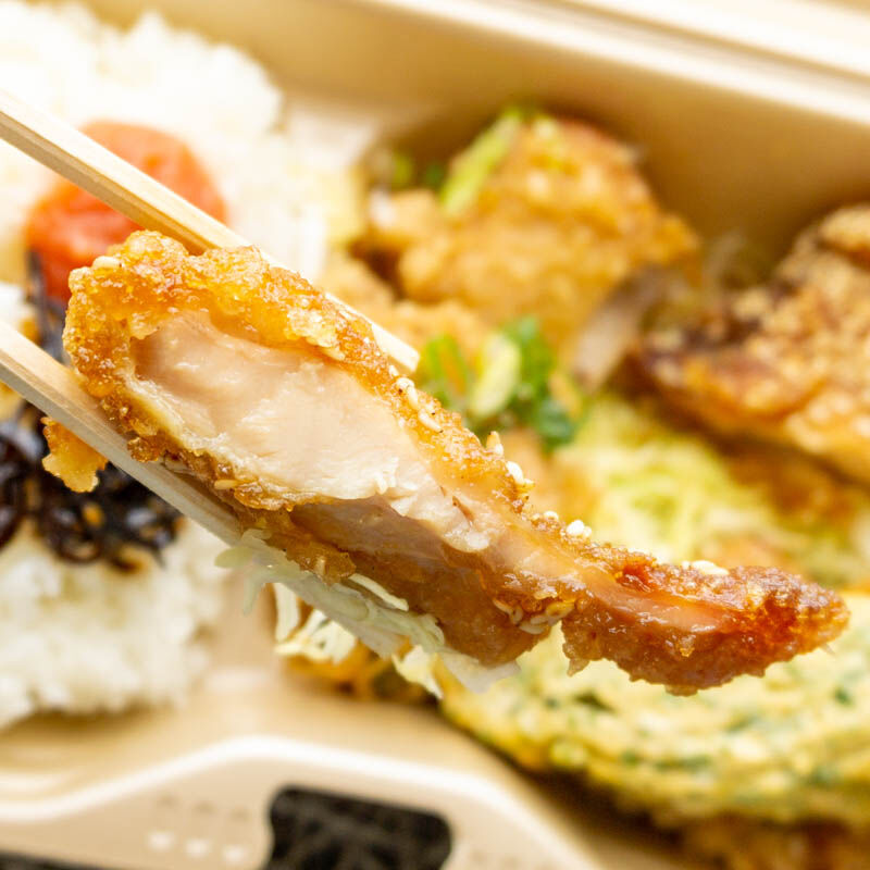 から揚げはいくつか種類があり、好きな味のから揚げを選んでお弁当にセットできるスタイル。