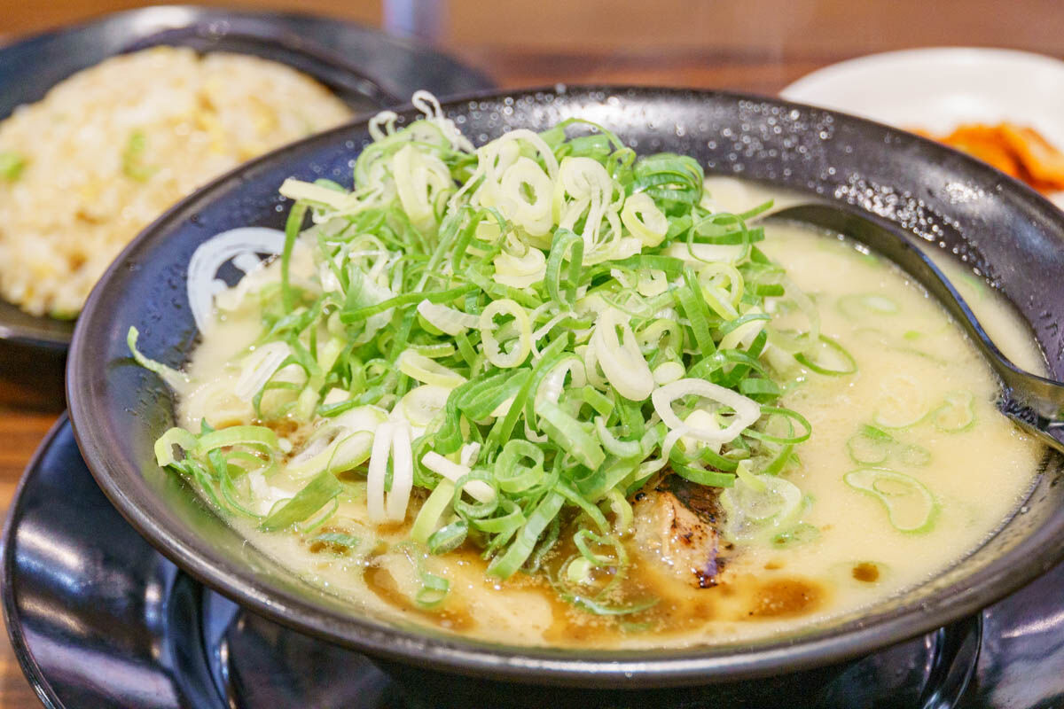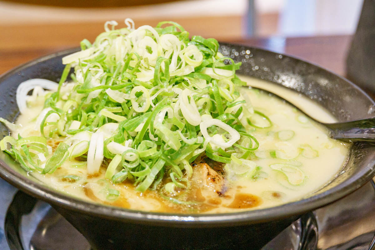 そんなわけで注文した人気NO.1メニューの「桂花豚骨」!ネギをトッピングしました。
