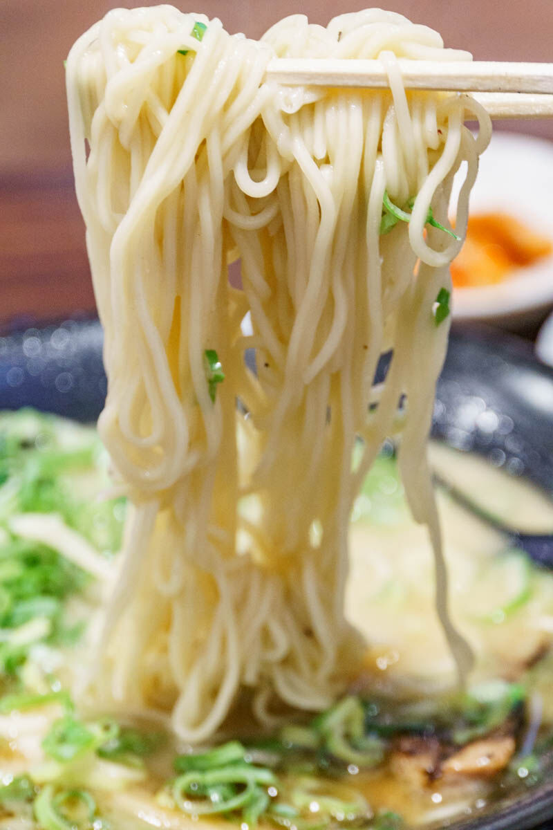 麺は細めで少し硬め。あっさりした豚骨スープにしっかり馴染んで良い感じ。マー油っていうんでしょうか?スープに浮かんだ黒い脂のおかげでまた良いコクが出ていてついつい飲んじゃうやつ!