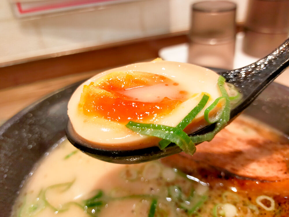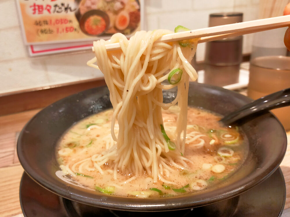 麺は細めで少し硬め。あっさりした豚骨スープにしっかり馴染んで良い感じ。マー油っていうんでしょうか?スープに浮かんだ黒い脂のおかげでまた良いコクが出ていてついつい飲んじゃうやつ!