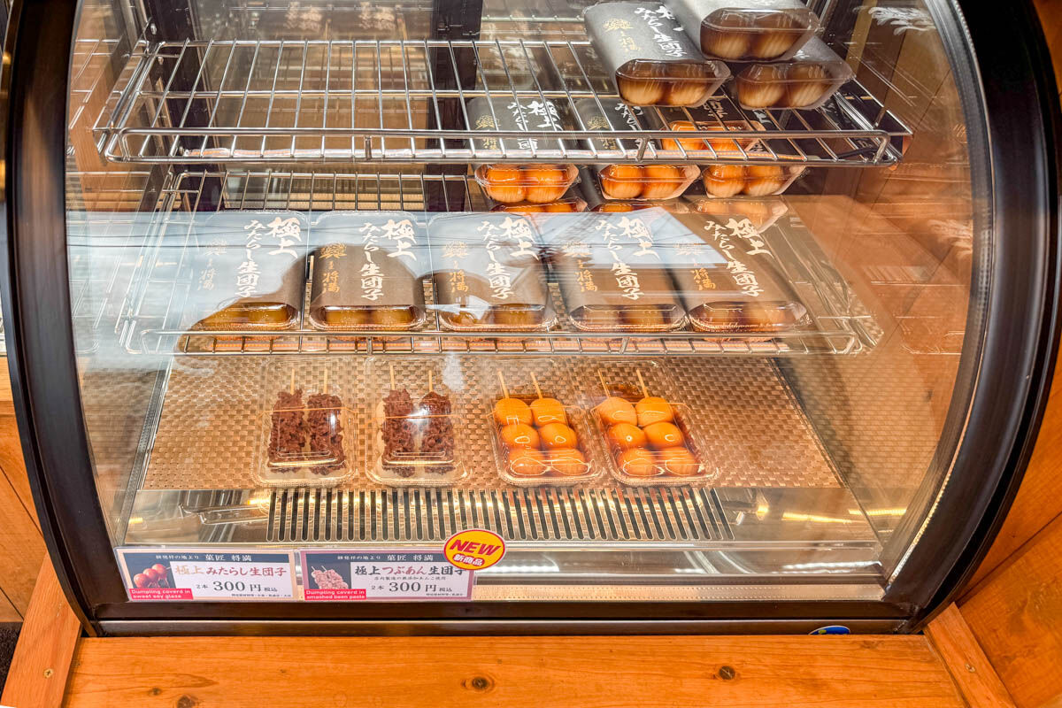 冷やされているひんやり系みたらし団子。「極上生みたらし団子」2本300円です。