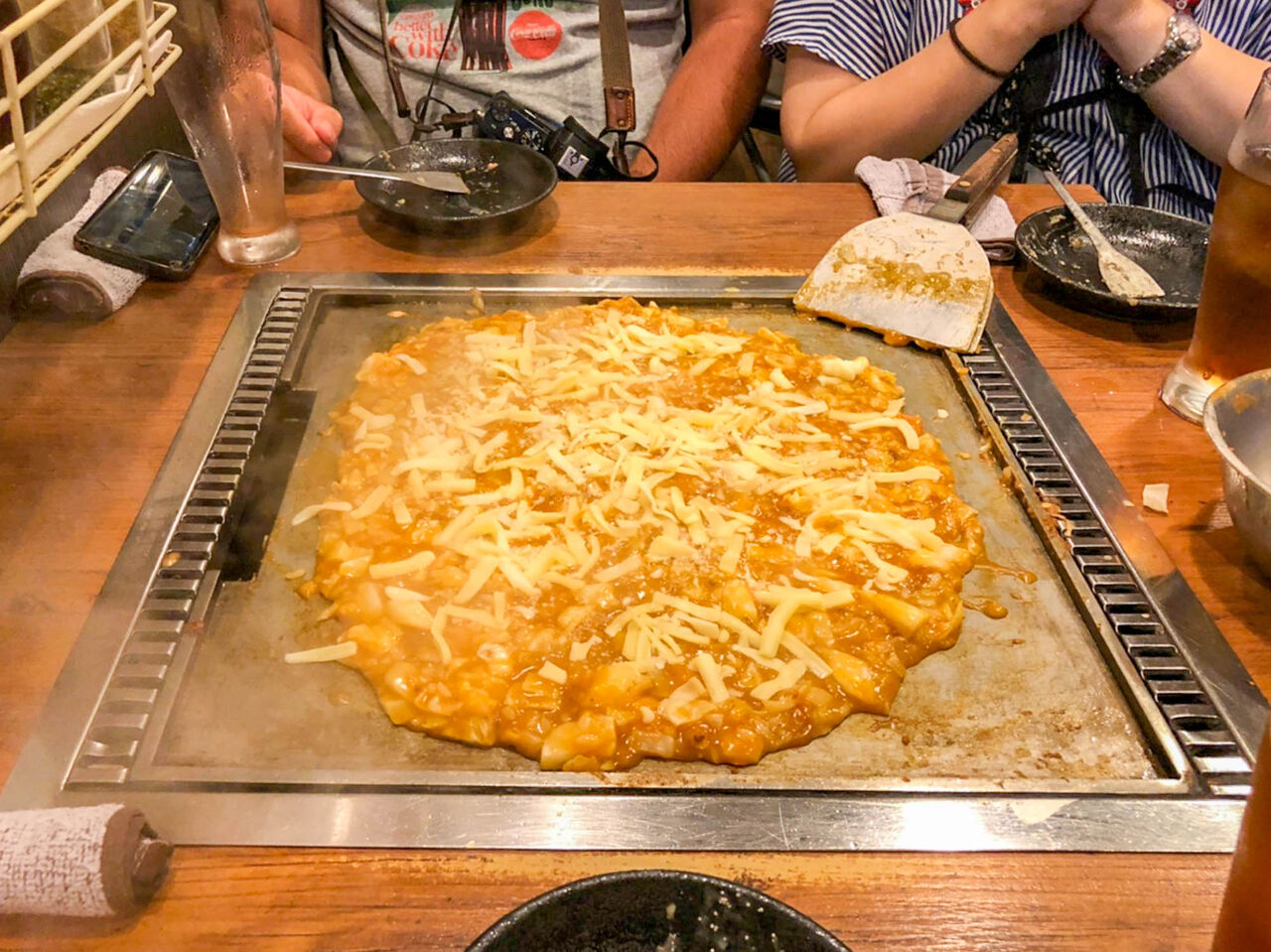 これも美味〜い。ミートドリアみたい!というか、個人的にもんじゃにチーズはマストかも知れません。どんな味にでも合うしおいしい。