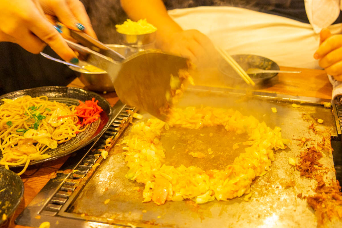 焼きそばを食べつつ、もんじゃも焼いていきます。