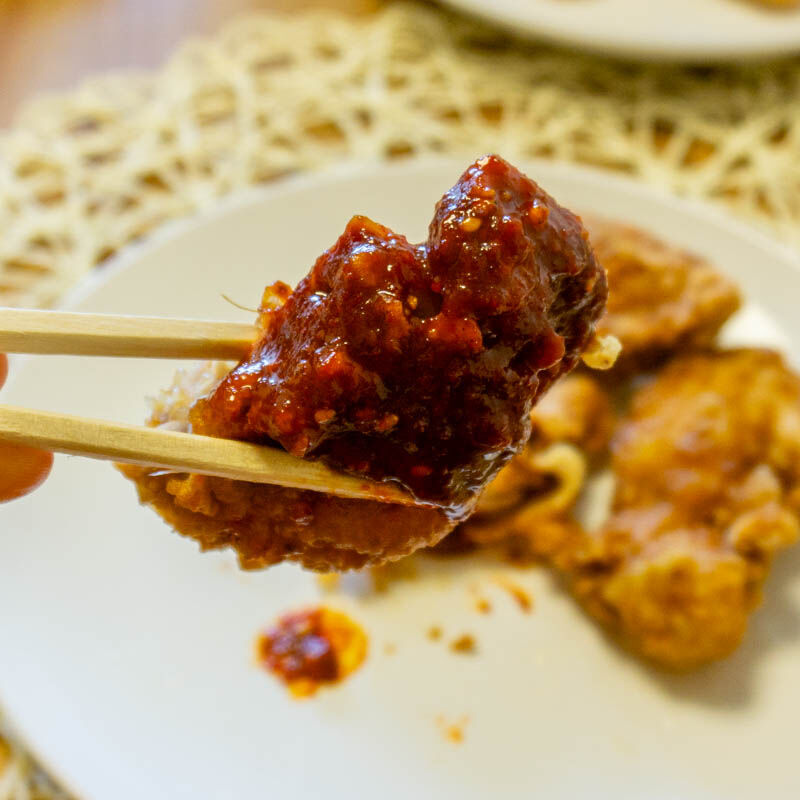 そしてヤンニョムソースをたっぷりつけてみることに。