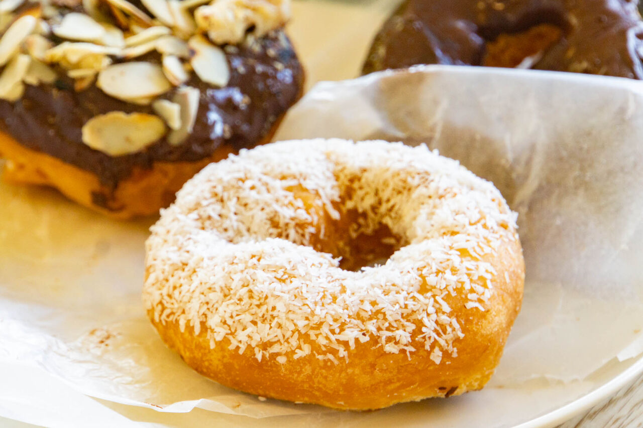 まずはココナッツ黒糖ドーナツを。贅沢にかけられたココナッツと、黒糖味のドーナツの相性がとても良い!食感はサクフワで、なんだか懐かしい気持ちにさせてくれます。