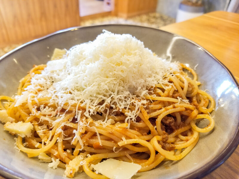 そして究極のボロネーゼは目の前でチーズを削ってくれる劇場型なパスタ。