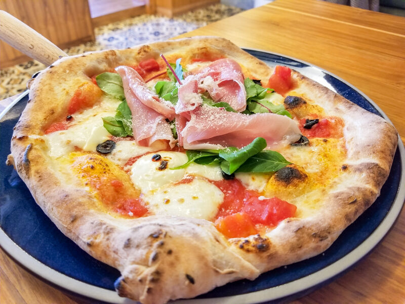 個人的にはこれのマスカルポーネがめっちゃツボでした、「プロシュートマスカルポーネ(1428円)」。甘みがあって生ハムで塩気があって葉っぱ(バジル?ルッコラ?)がいいアクセント!