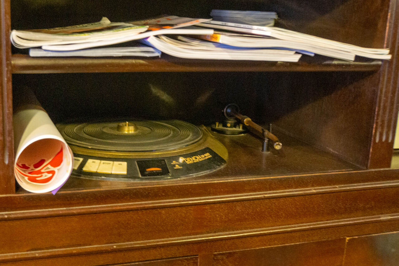 キャビネットと一体型のレコード再生機。なかなかレアなのでは!