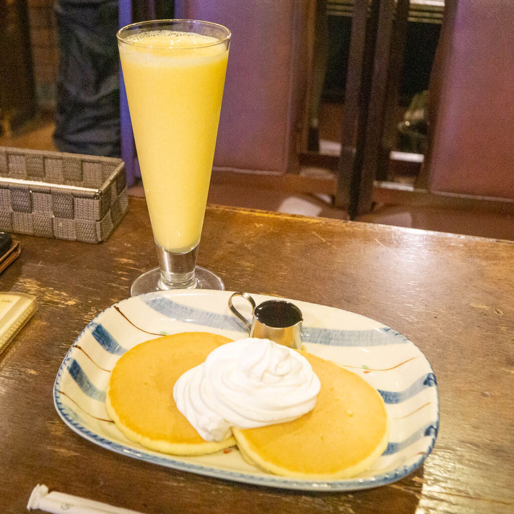あぁ昭和。路地裏にある純喫茶「再会」の『ミックスジュース&ホットケーキ』(大阪市旭区千林)【もりつーグルメ】