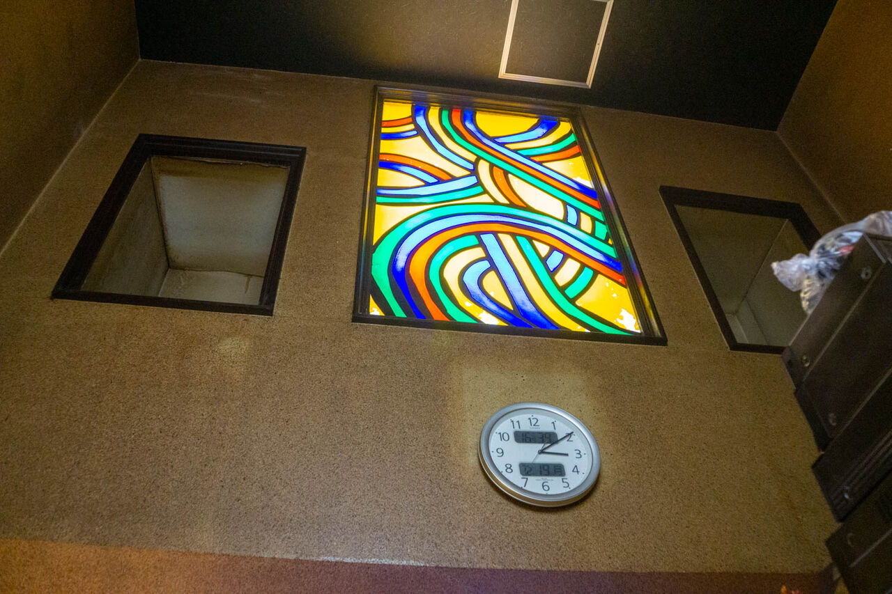 上をみるとステンドグラス。