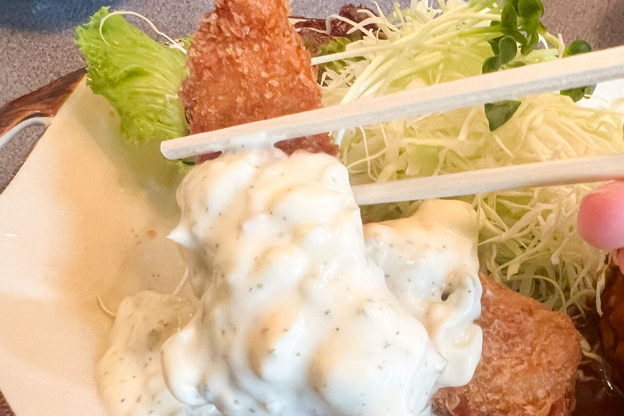 ご覧下さい。タルタルソースもたくさんかかっています。