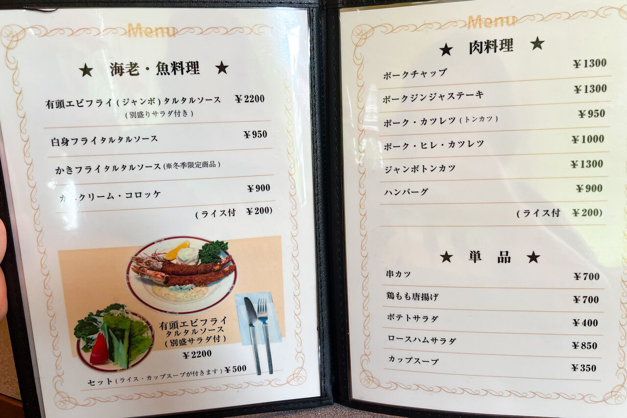 メニュー表を見てみると、フライ系メニューの豊富さにびっくり。こんなの選びきれん…と迷っちゃいますよね。