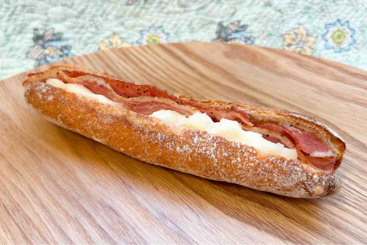 おすすめの1つ、フランスパンのベーコンポテト(260円税込)。
