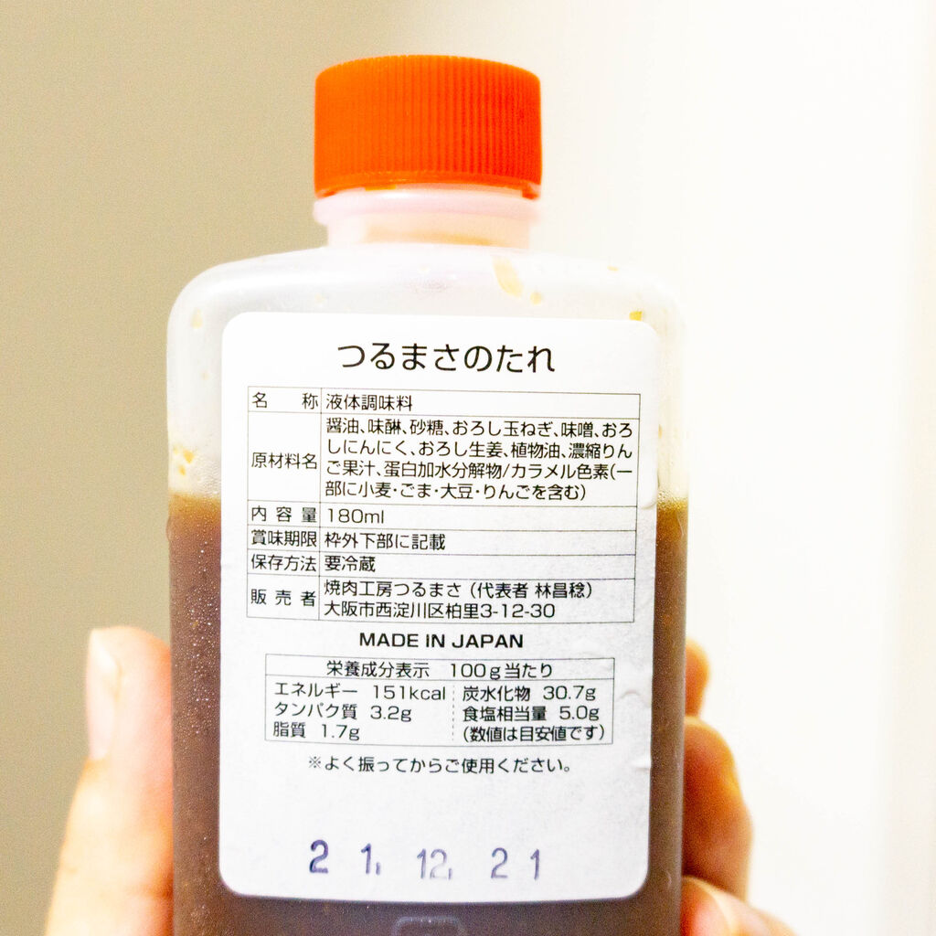 ほんとに食べれば食べるほどタレの甘みと旨味が美味しくって、気になって裏の成分表示も撮ったんですが、みりんやおろし玉ねぎの甘さだったようです。