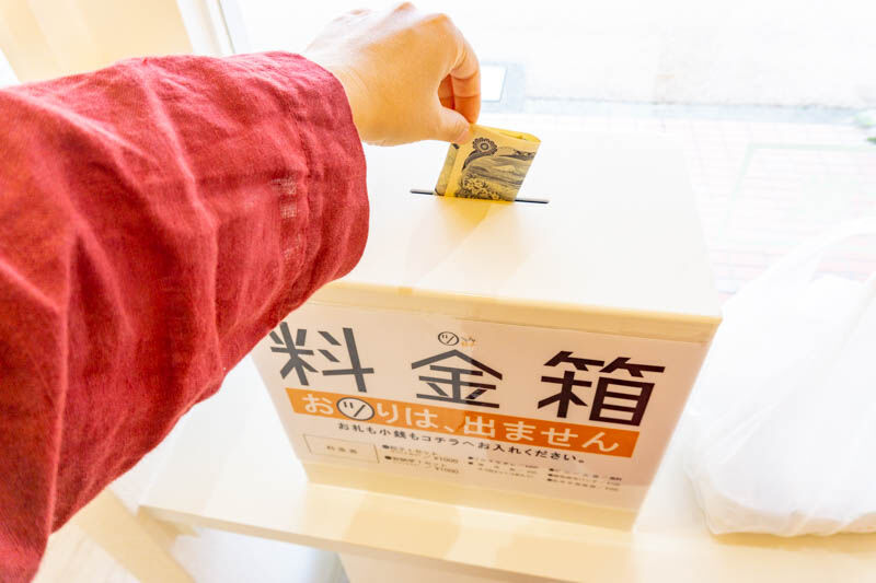 開店記事でもお伝えしたとおり無人の餃子販売所なので、自分で冷凍庫から出して袋づめし、料金箱にお金を投入して持ち帰りです。