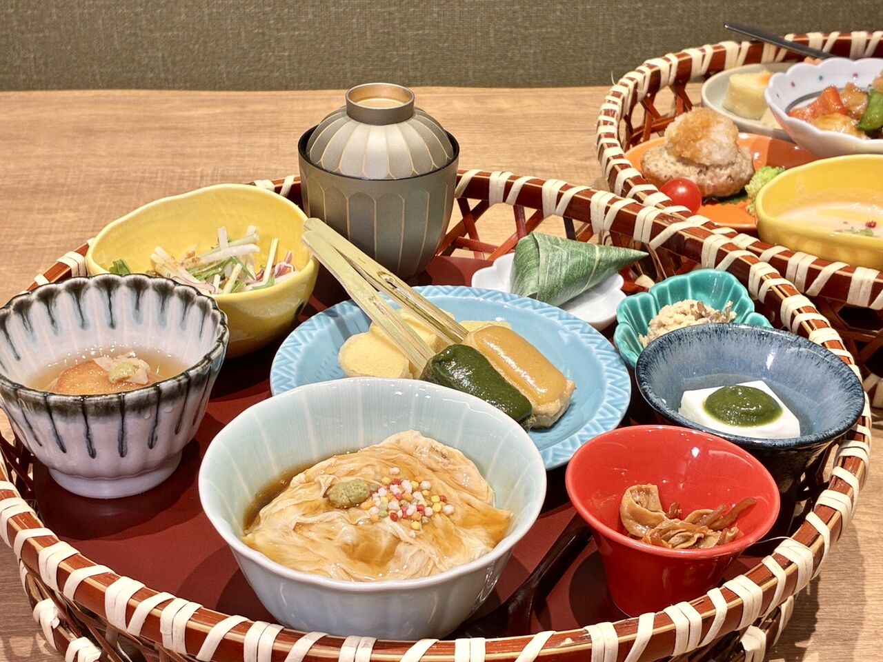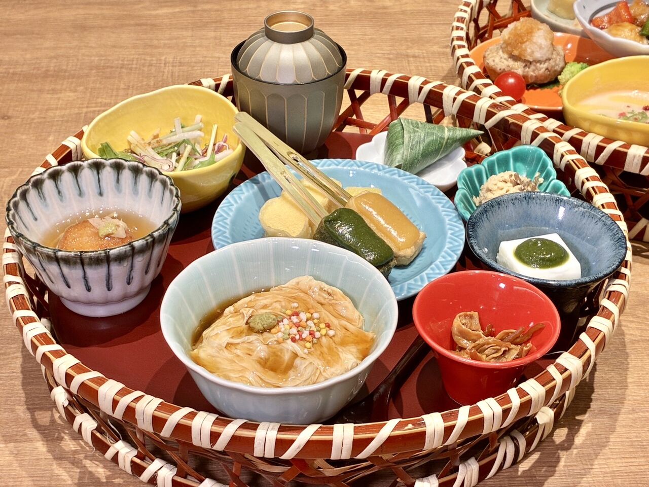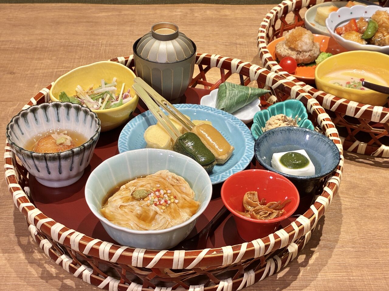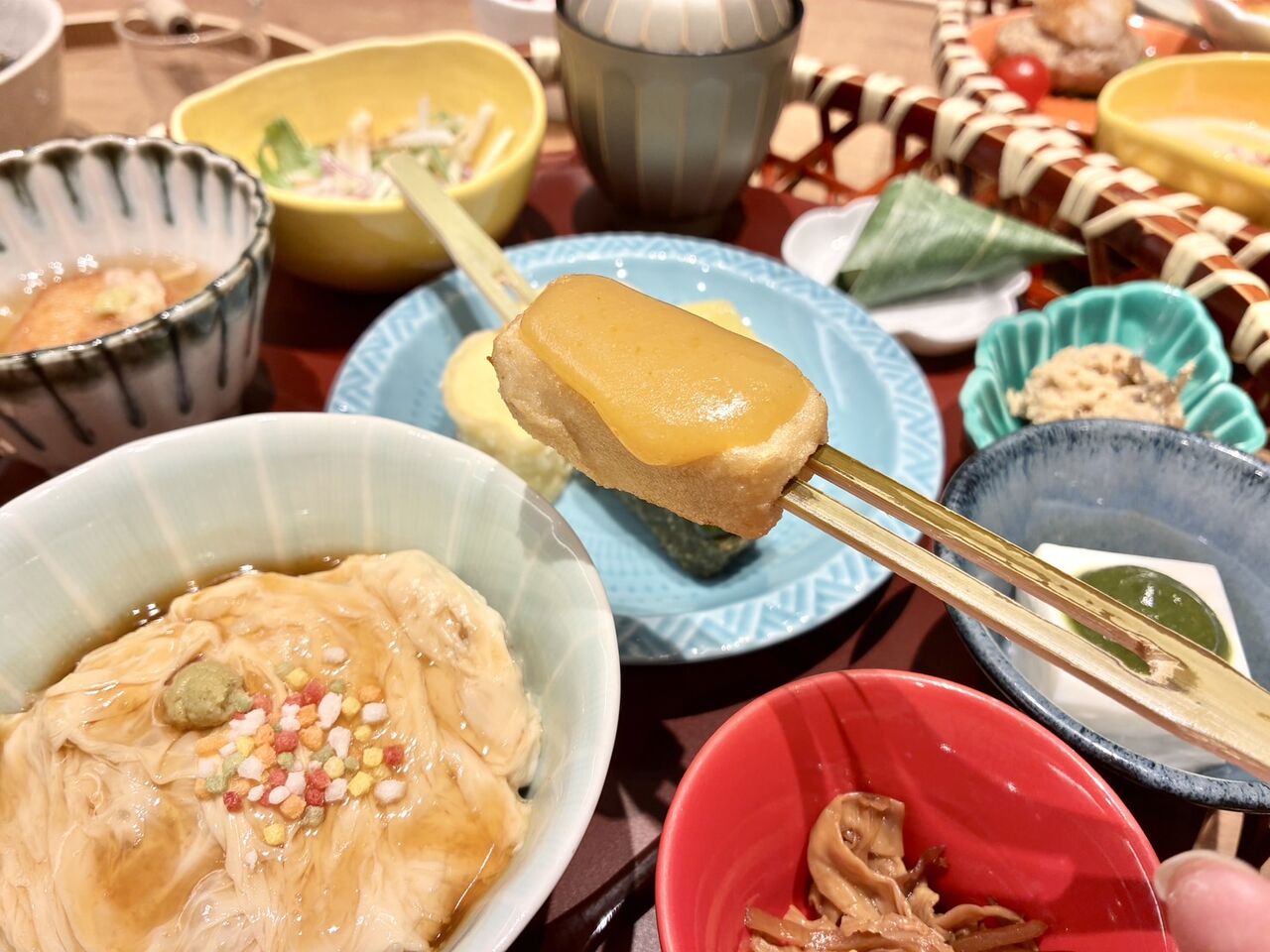 ミニ湯葉丼に生麩田楽、湯葉揚げ、嶺岡豆腐など種類豊富!少しずつ楽しめるの嬉しい〜。