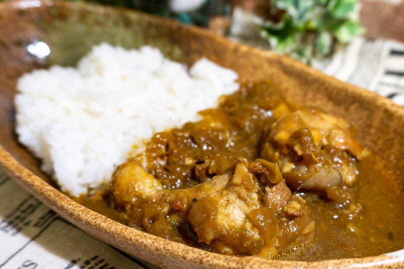 カレーはスパイスがたくさん使われてるんやろなって思う複雑な風味と、とろっとろで口の中で溶けちゃうような玉ねぎの相性がバツグン!