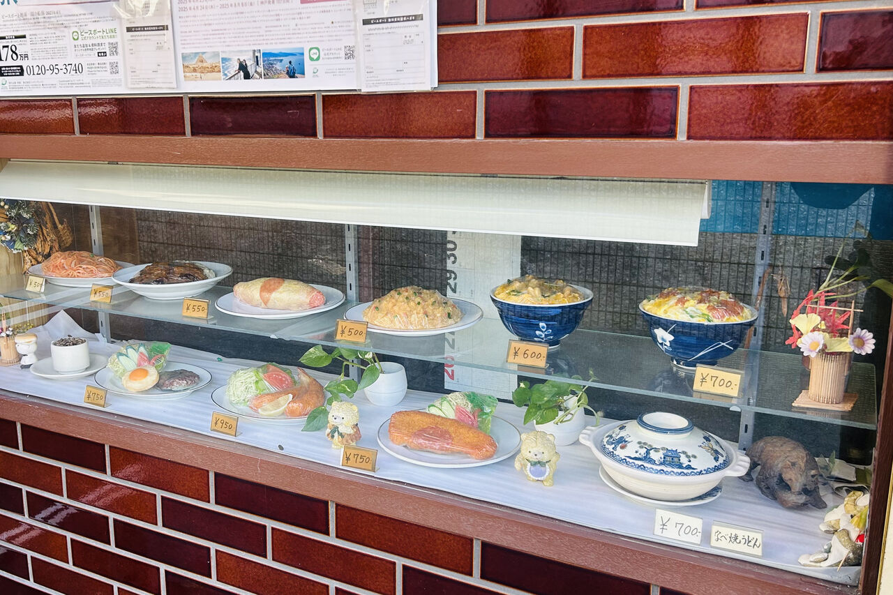 ショーケースに並ぶ食品サンプル