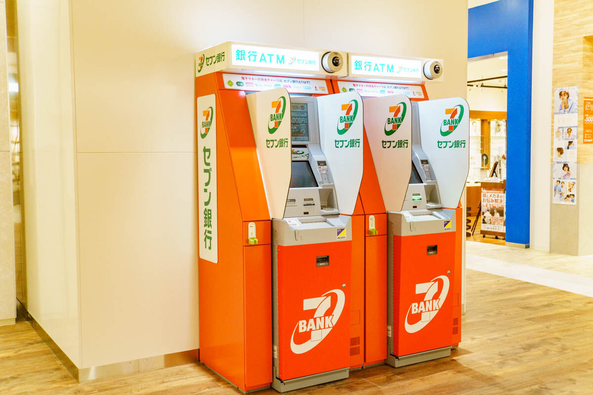 セブン銀行のATM。銀行カードを使った取引のほかクレカでのキャッシング、「nanaco」のチャージ・残高確認などができます。