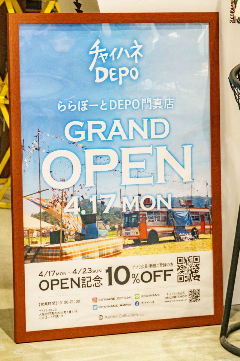 エスニック・アジアンファッションや雑貨・アクセサリーのお店である「チャイハネ」のアウトレットも扱う業態。関西ではららぽーと門真が初出店。