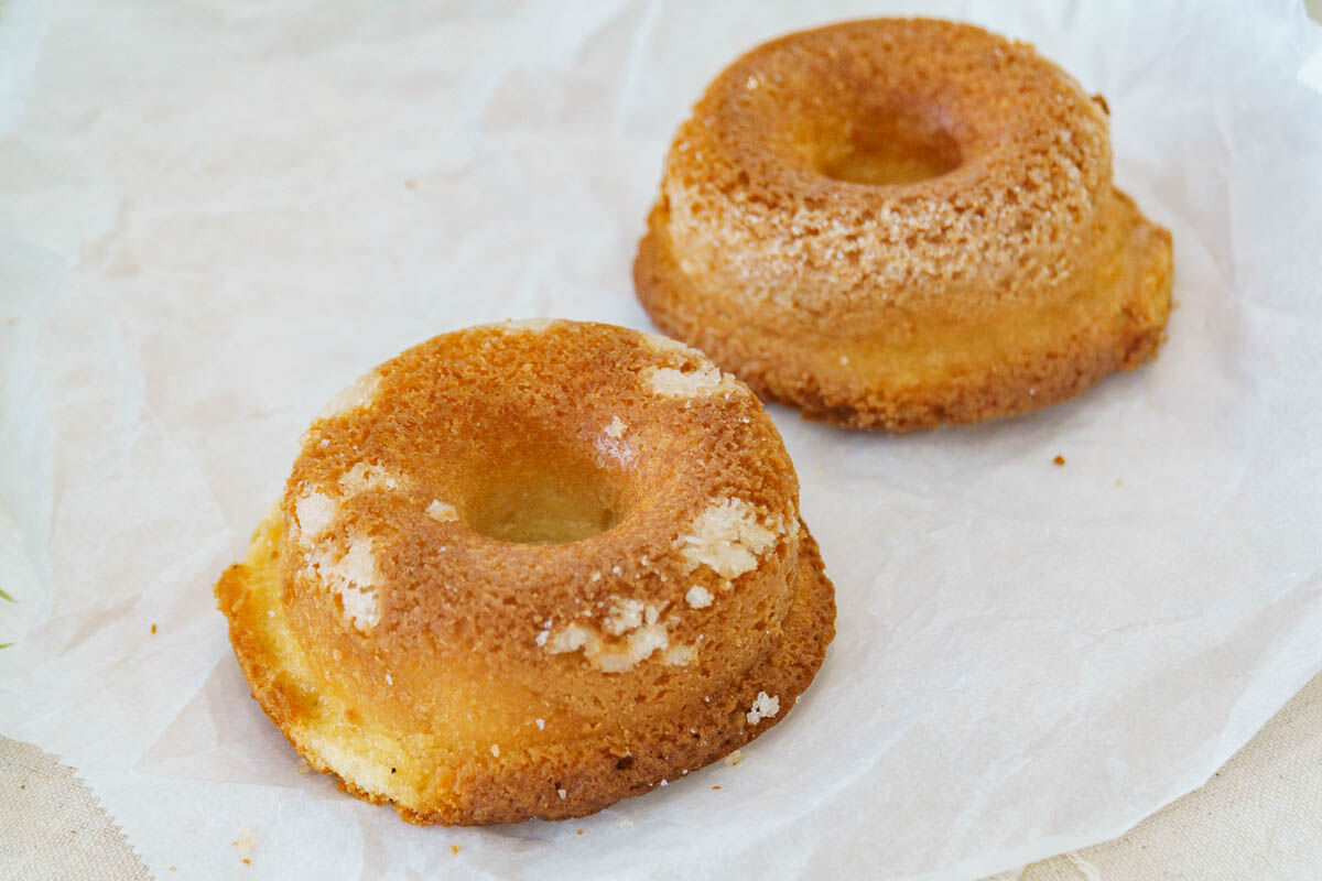「プレーンはほんのりバナナ?風味。サクッとしてる部分もある。焼菓子でケーキっぽい!シュガーはザクザク部分がいいですね〜!コーヒーにあう!!」