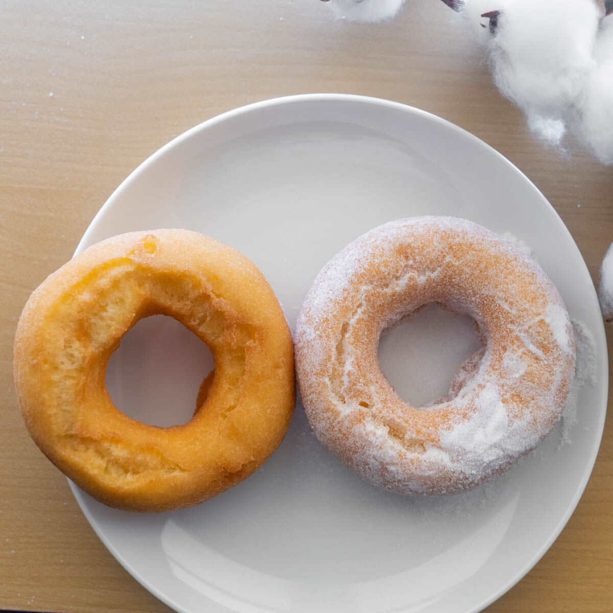 見た目…ドーナツの形・大きさ・中心の穴、全てにおいて王道なTHEドーナツ!シュガーのかかりっぷりも最高に美味しそうに見える!