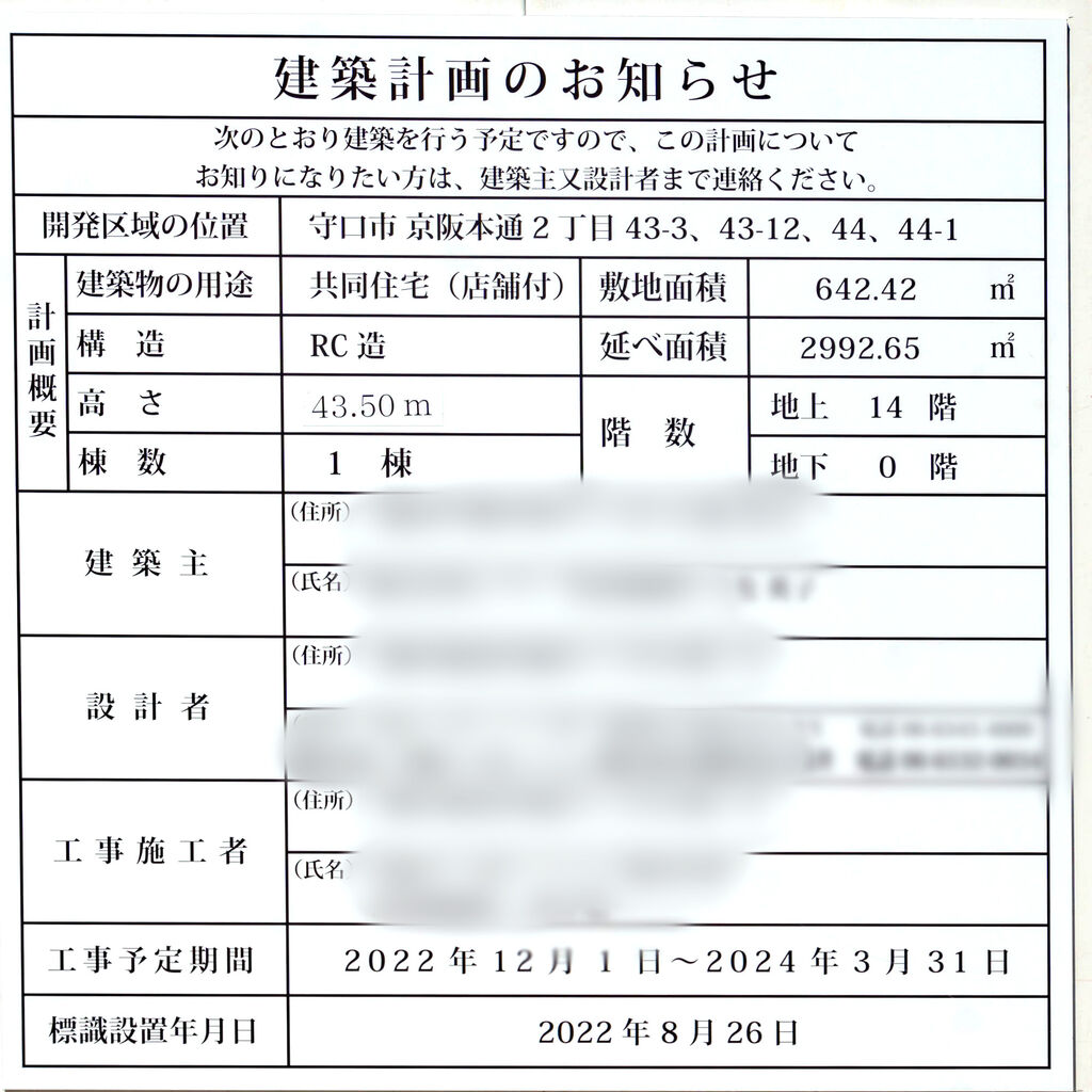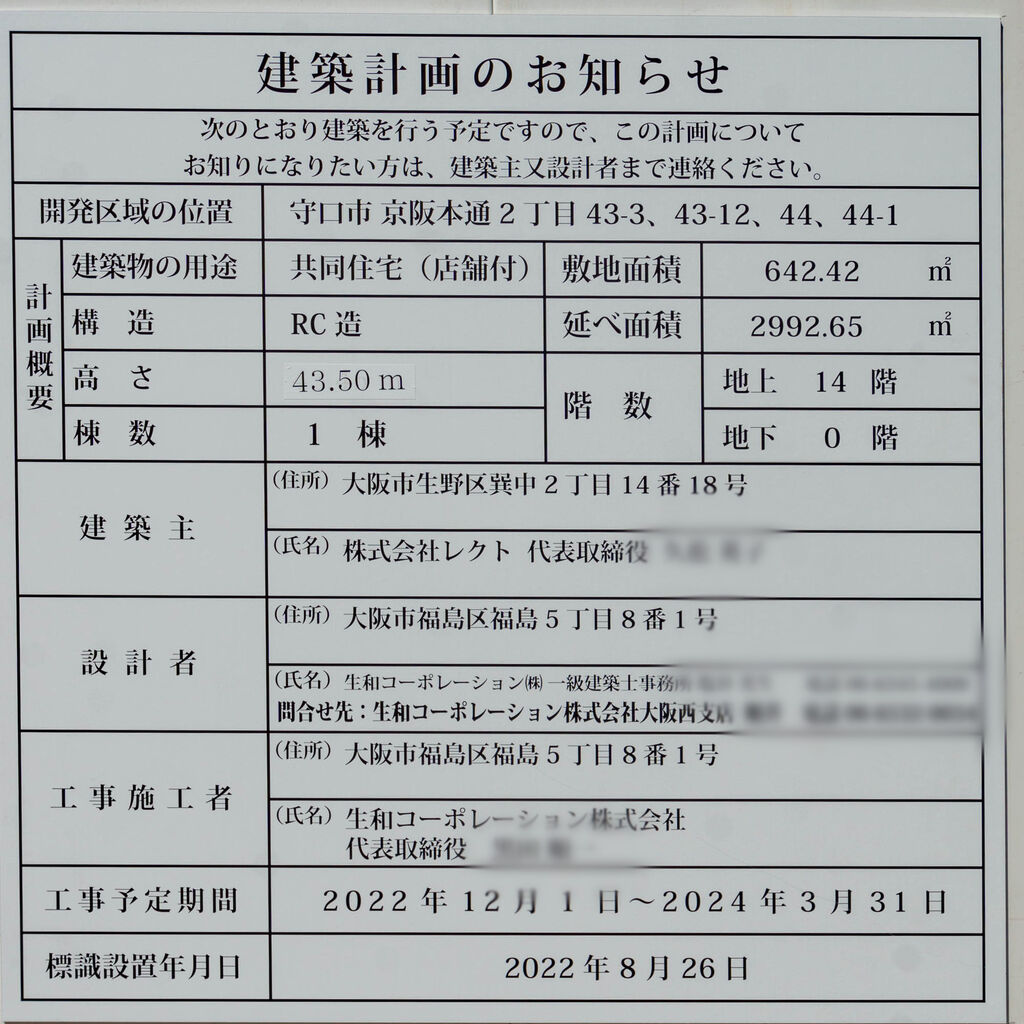 大阪メトロ守口駅そばに14階建て店舗付マンションができるみたい。アミスターがあったところ