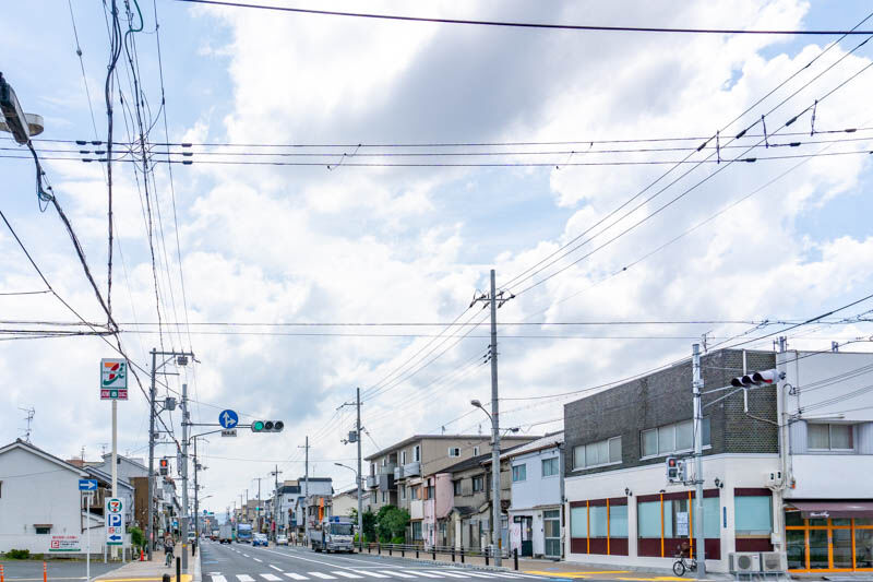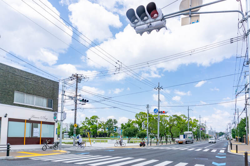 こっちに行くとすぐ隣が大枝公園で、道なりに行くと「大阪国際学園前」交差点が。