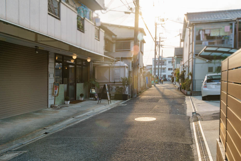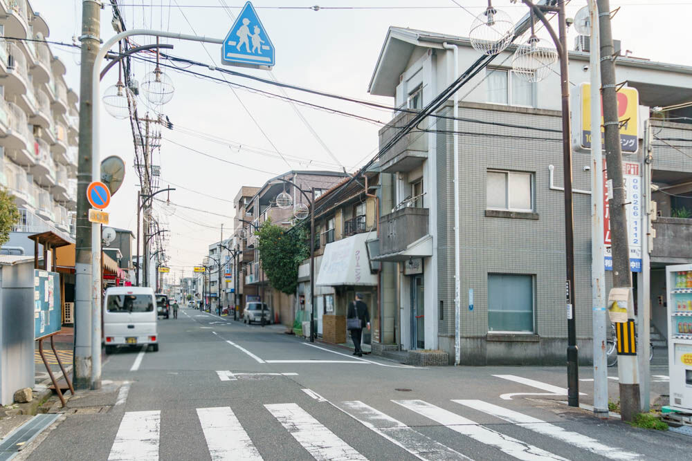 ジャガータウンの裏手から梶町方面に進み、ここのT字路を右に曲がります。