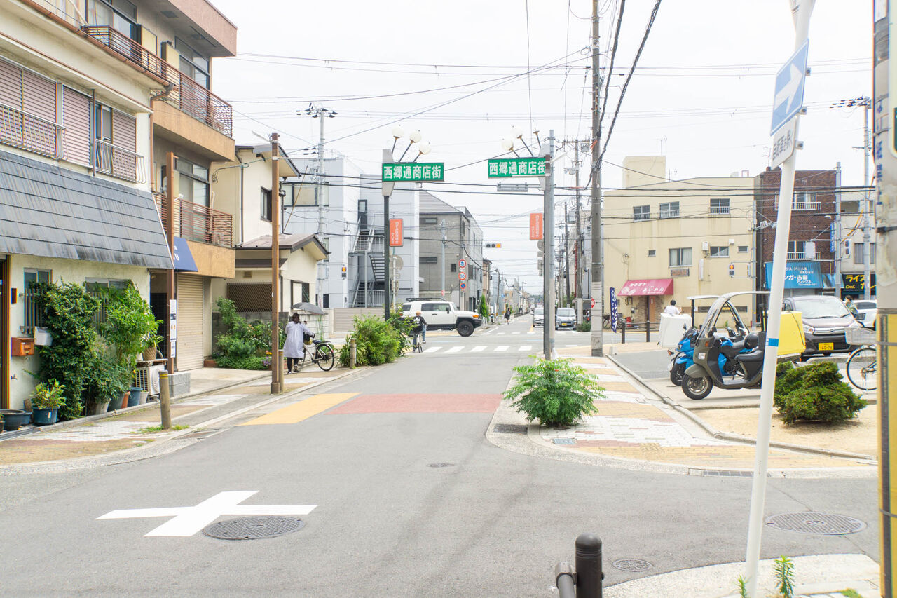 ファミリーマートのある交差点を右折すると大枝公園などがあります。直進すると樟風中学校があり、国道163号線へ。