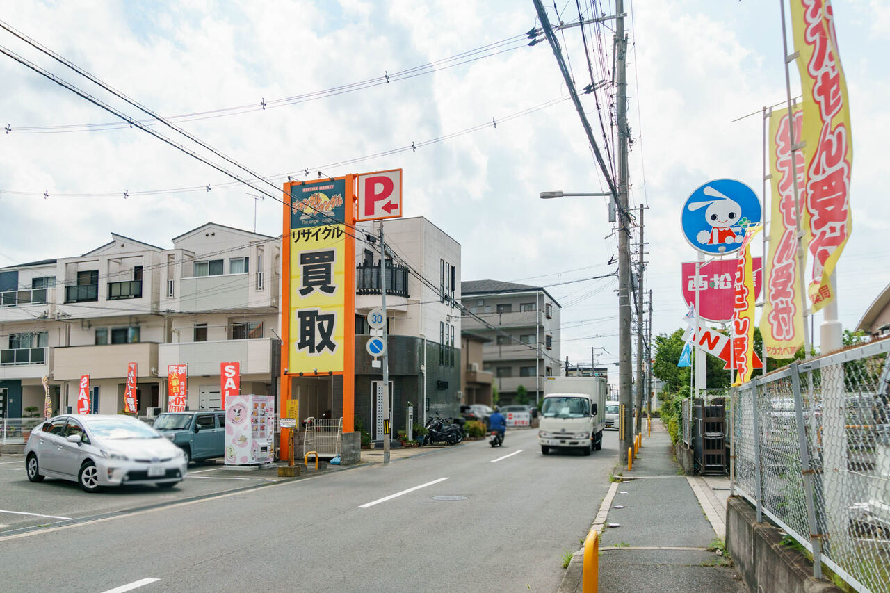 大阪府守口市寺方本通3-4-6にある、リサイクルショップ「ジャングルジャングル守口店」の敷地内です。